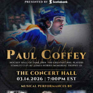 The 2026 NHL Alumni Association’s Man of the Year to be held at Toronto’s historic Concert Hall, will honour NHL legend, Paul Coffey, and will feature musical performances by Award winning Canadian Artists Tom Cochrane, Sam Roberts and Barney Bentall. Paul Coffey is widely regarded as one of the greatest defensemen in NHL history, will be celebrated for his extraordinary on-ice career and contributions to the NHL Alumni Association. His accolades include four Stanley Cup championships (three with the Edmonton Oilers and one with the Pittsburgh Penguins), three Norris Trophies as the NHL’s top defensemen, induction into the Hockey Hall of Fame in 2004, and inclusion among the 100 Greatest NHL Players of all-time. Come be part of the celebration and historic evening with many of Paul’s former teammates and rockers Tom Cochrane, Barney Bentall, Sam Roberts and more! Tickets are limited & will go fast!